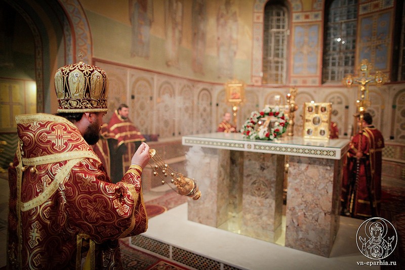 По слову владыки Арсения, проповедь о Кресте у апостола Павла неразрывно связана с проповедью о любви Божией к этому миру. Христос не стал царем в том представлении, которое бытовало в то время в иудейской среде, не оправдал их земных чаяний. Но люди не могли себе представить, что во время своего крестного пути на Голгофу Он станет самым великим Царем, который когда-либо был на земле. Царствие Божие, о котором возвещено в Евангелии, – это не земное величие Христа, который отверг это искушение, а именно крестный путь Спасителя и, как следствие, наш крестный путь, который мы повторяем вслед за Христом. Это путь борьбы со злом в нашей душе и безропотного, доверительного, благодарного перенесения всех испытаний, которые Господь посылает в нашей жизни. Владыка подчеркнул, что самое важное, о чем говорит настоящий праздник и к чему должна обращаться наша мысль, когда мы думаем о Кресте Христовом, представляем этот Крест или изображаем его на себе, это то, что Царствие Божие – это распятая на Кресте любовь Бога к человеку, которая забывает себя для того, чтобы дать нам жизнь, спасти мир. Ведь ради жизни мира Христос взошел на Крест, сошел в ад и воскрес. Он прошел этот путь не для Себя, а для нас, чтобы каждый в своем личном следовании за Ним прошел в итоге тем же самым путем, потому что Господь призывает всех нас в Царство Небесное. Пусть память об этом никогда не покидает нас среди тяжких обстоятельств, трудностей, страданий или даже гонений, которые не раз случались в истории христианства. Будем помнить Крест Христов, который является знамением нашего искупления и нашей победы, а также слова Господа: «Мужайтесь: Я победил мир» (Ин. 16, 33).