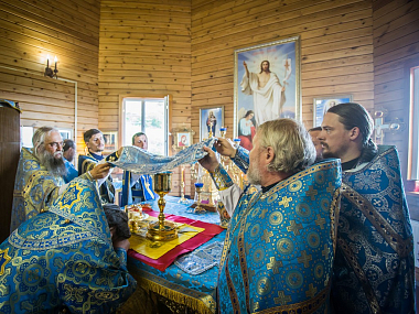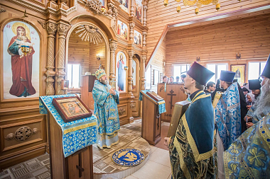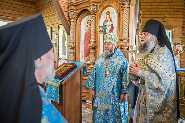 Правящему архиерею за литургией сослужили настоятель монашеской общины игумен Зосима (Сахипгараев), благочинный Воткинского округа иеромонах Павел (Белокрылов), настоятель Богоявленского храма с. Гольяны священник Александр Филиппов, настоятель Свято-Троицкого храма с. Якшур священник Кирилл Муравьев, а также клирики монашеской общины Тихвинской иконы Божией Матери.