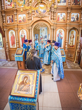 «Когда Моисей вывел богоизбранный народ из рабства, Бог послал свою помощь в виде облака, которое вело народ в обетованную землю. Так и нам Господь дал Заступницу Усердную – Божию Матерь. Она как облако покрывает нас и в зной, и в стужу. По всем концам земли просияли иконы Божией Матери. Чудно то, что здесь, на берегу Камы, трудами нескольких монахов создана обитель в честь Божией Матери. Пусть же Пресвятая Богородица как облако покрывает эту обитель от всякого зла», – пожелал архипастырь.