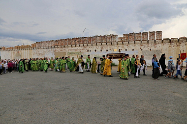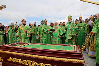 После Литургии вокруг монастыря был совершен крестный ход с ракой со святыми мощами преподобного Далмата Исетского, основателя обители. Во время торжественного шествия состоялось освящение памятника преподобному.