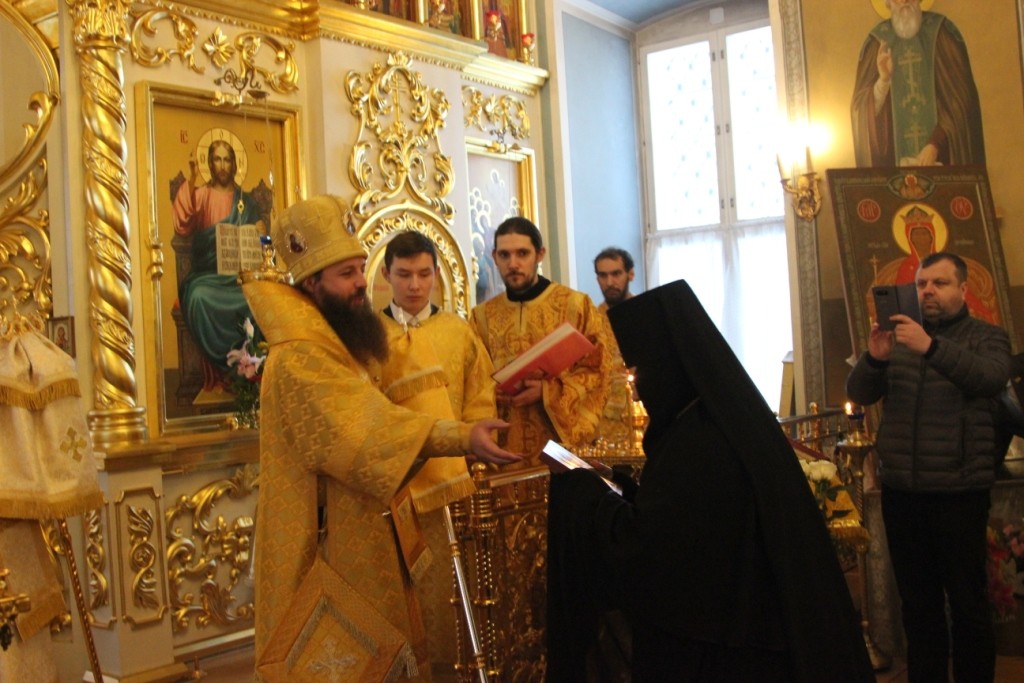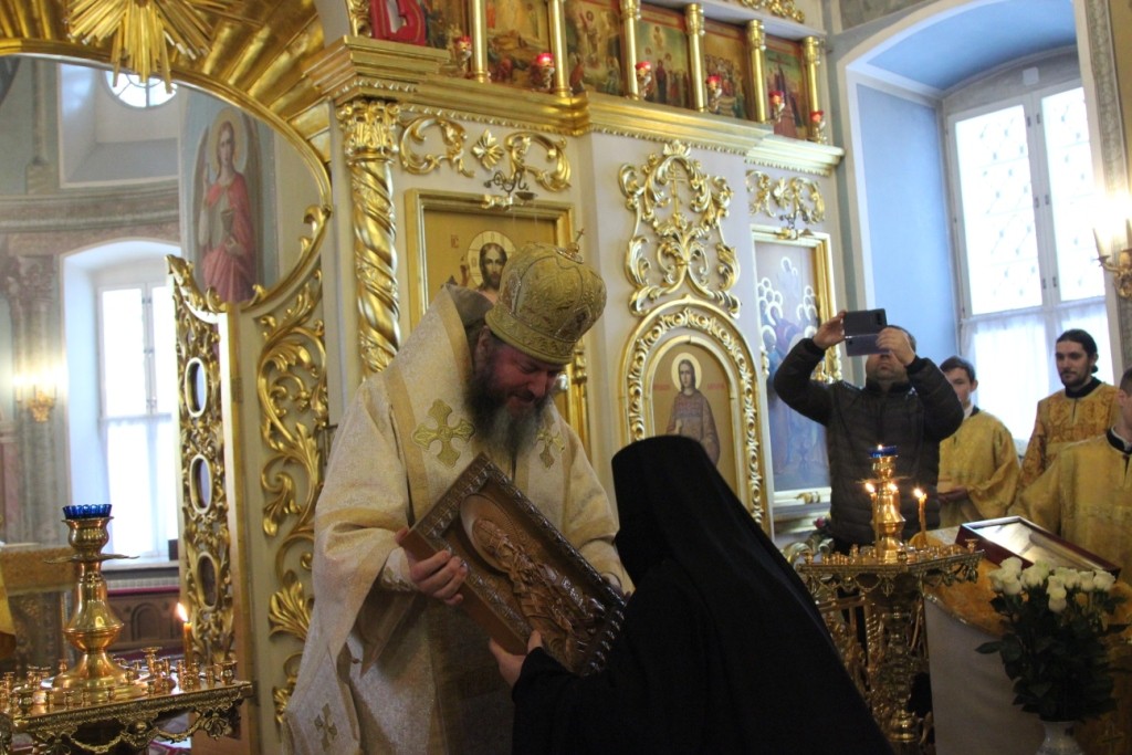 По окончании Литургии Преосвященнейшие владыки поздравили настоятельницу монастыря игумению Ольгу (Соколову) с 70-летием, поблагодарили ее за многолетнее самоотверженное служение на благо Святой Церкви, понесенные труды в деле возрождения монастыря, пожелали ей помощи Божией на ее многотрудном поприще и многая и благая лета.