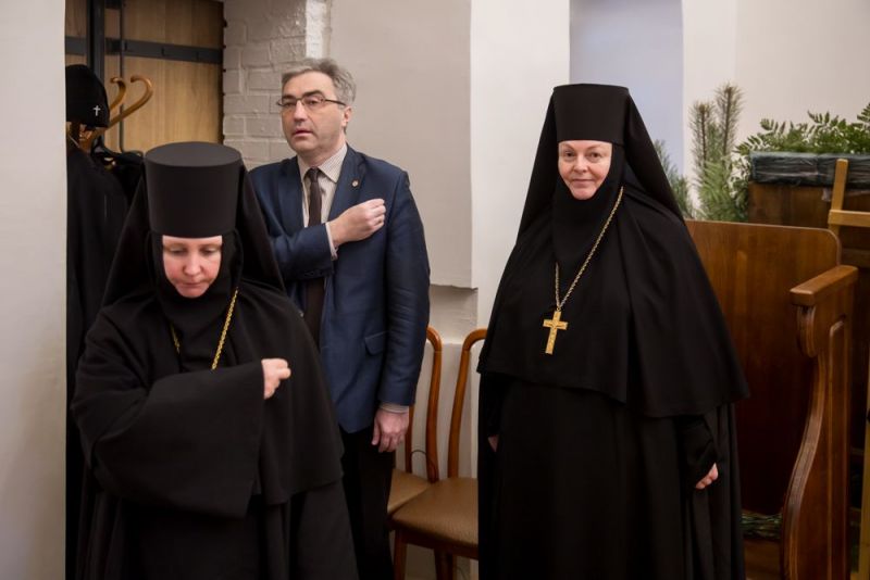 Настоятельница монастыря игумения Вера (Ровчан), главный архитектор проекта по реставрации Виктор Петришин и экспертный менеджер, глава фирмы, восстанавливающей монастырь, Людмила Коваль получили церковные знаки отличия из рук главы Скопинской кафедры.