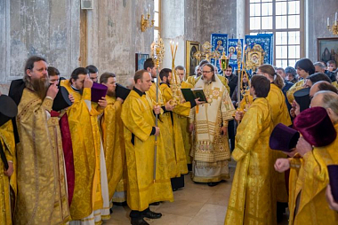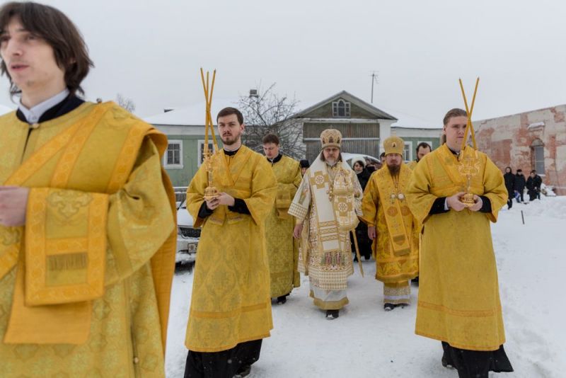 По окончании Литургии духовенство и миряне проследовали крестным ходом в Казанский собор обители, где у мощей святителя Феофана был совершен молебен.