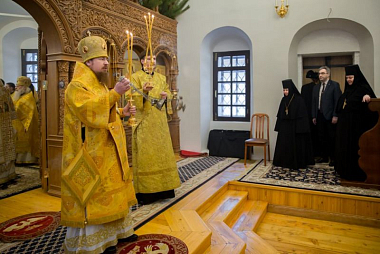 По завершении богослужения епископ Феодорит наградил тех, кто особым образом потрудился на благо обители, медалями святителя Феофана Затворника II степени.