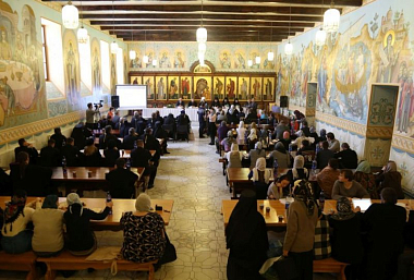 С приветственным словом к собравшимся обратился митрополит Марк. Владыка в своей речи коснулся темы факторов, которые привели к формированию такой многогранной и духовно богатой личности, как святитель Феофан. Его Высокопреосвященство напомнил, что будущий затворник одно время жил и трудился в Иерусалиме, там знакомился с традициями Православного Востока. И поэтому святителя Феофана Вышенского можно назвать примером для подражания, который, как отметил владыка Марк, «призывает нас не только изучать личности наших святых, знакомиться с жизнью и трудами русских богословов, но и изучать жизнь Православного Востока, не оставляя любви к своему Отечеству, к своей родной Церкви, обогащать себя знакомством с православным миром и православными традициями».