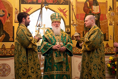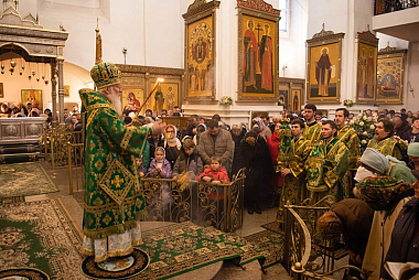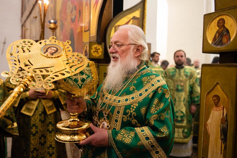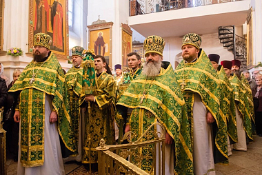 Богослужение сопровождалось пением мужского хора Новгородского духовного училища под управлением регента диакона Андрея Каурова.
