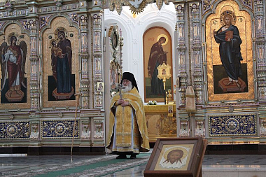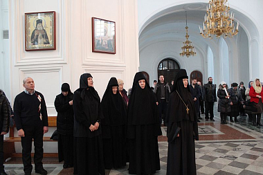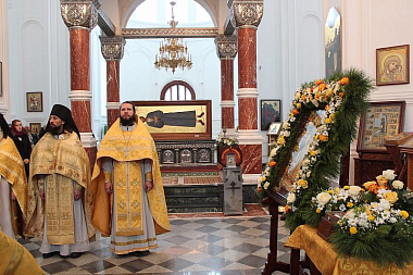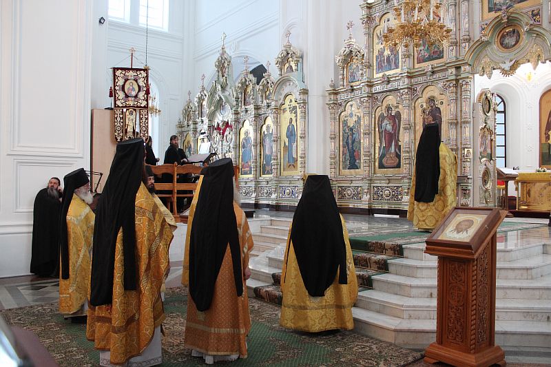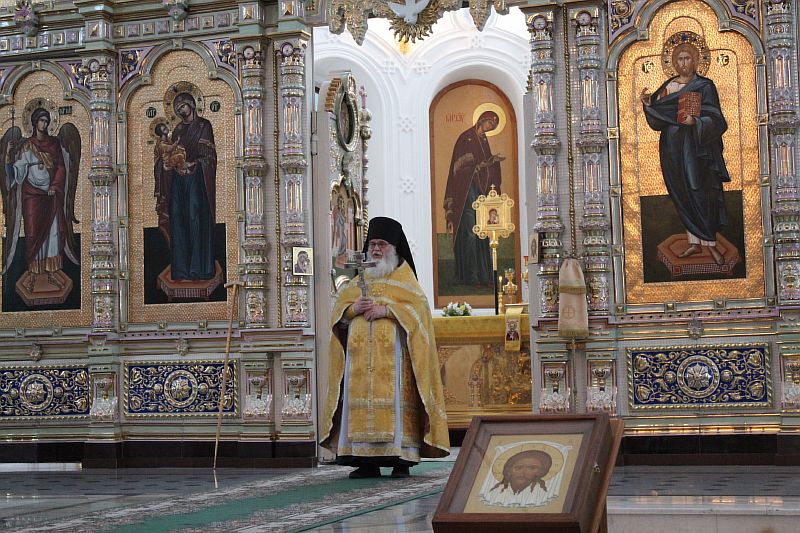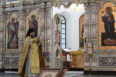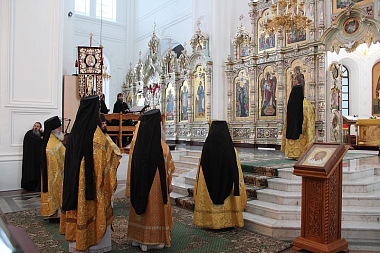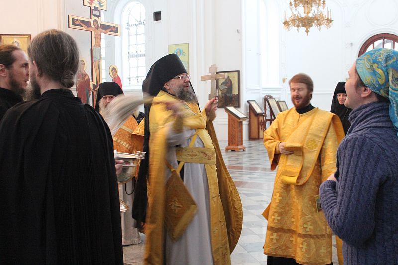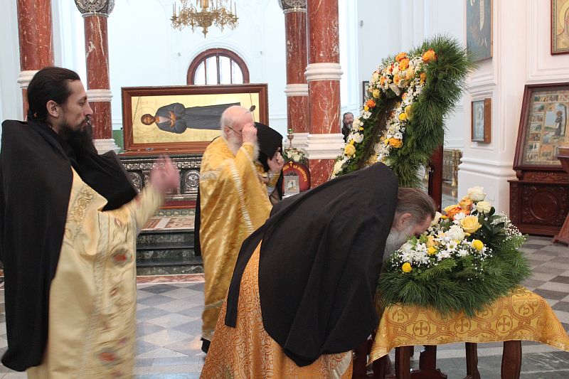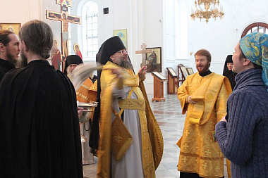 В этот день Божественную литургию в Крестовоздвиженском соборе обители возглавил наместник Николаевского монастыря игумен Иероним (Миронов).