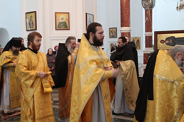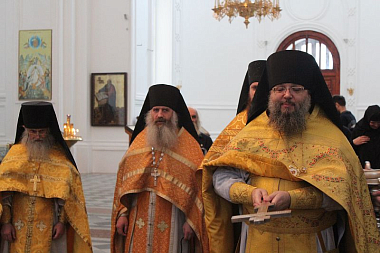 Его Высокопреподобию сослужили священноиноки обители и настоятель Свято-Троицкого собора иерей Владимир Иванов.