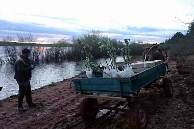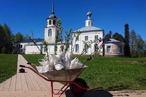 «Деревца проделали длинный путь. Сначала паломник Николай Куликов забрал их из петербургского питомника "Северный сад", – рассказала пресс-секретарь Пинежского благочиния Людмила Соснина. – Потом была дорога на поезде до Архангельска; чтобы деревца ехали комфортно, для них приобрели отдельный билет. Еще один поезд – до Карпогор. А дальше на машине до берега Пинеги, где уже ждала лодка. На другой стороне реки их на лошадке довезли до монастыря».
