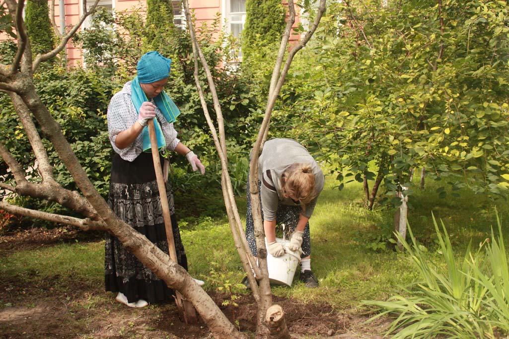 Приехавшие в монастырь с желанием потрудиться и внести свою лепту в благоукрашение монастыря усердно несли послушания, выполняя различные работы. Усилиями волонтеров было многое сделано при уборке территории обители, в монастырских садах, в устраиваемой теплице монастыря, в швейных мастерских.