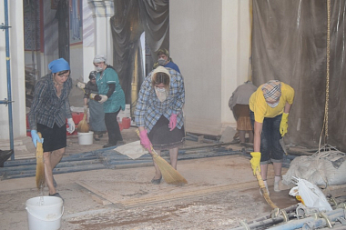 Также продолжали облагораживать родную обитель прихожане монастыря. Более месяца каждые выходные верные труженики под руководством клирика обители иерея Евгения Мельникова помогали убирать восстанавливаемый Воскресенский собор монастыря от строительного мусора. После завершения уборки собора помощники помогали с уборкой территории и посадкой растений.