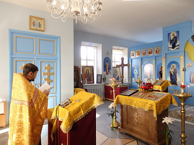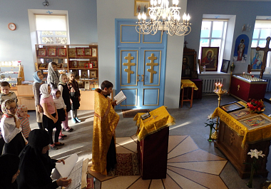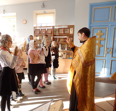 Перед началом занятий клириком Покровского кафедрального собора г. Сарапула иереем Павлом Шадриным в монастырском храме был отслужен молебен, по окончании которого дети перешли в новый просторный класс, приготовленный для нового учебного года.
