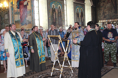 После того, как прихожане приложились к иконе, клирик монастыря иеромонах Савва совершил помазание освященным маслом от иконы Божией Матери «Избавительница от бед». 30 августа святой образ будет принесен на подворье Вознесенского монастыря – святой источник, место явления Феодоровской иконы Божией Матери.