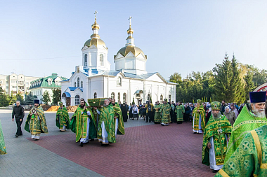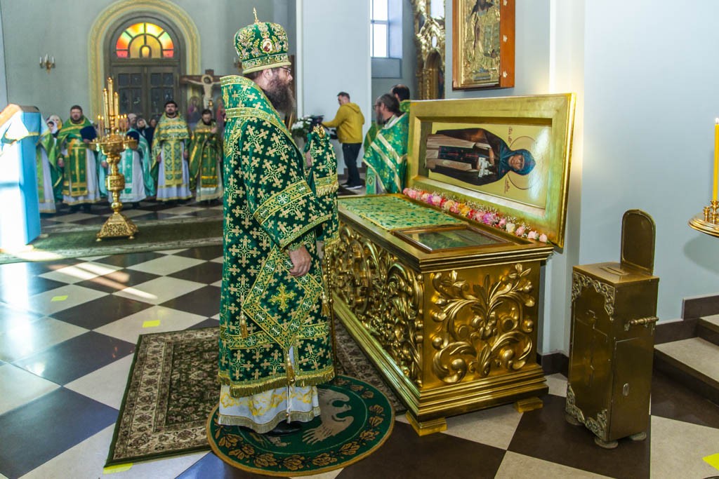 По окончании Божественной литургии был совершен крестный ходом вокруг храмаи отслужен молебен преподобной Марфе Тамбовской.