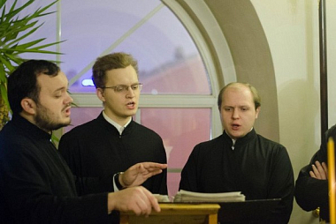 Церковные песнопения исполнил малый мужской хор Казанской православной духовной семинарии под управлением Сергея Забавнова.