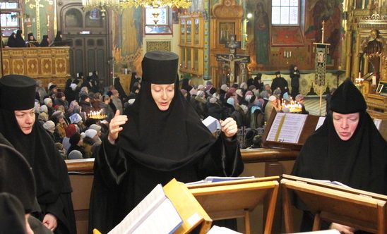 Богослужебные песнопения исполнил сестринский хор Введенского женского монастыря.