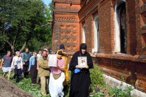 Перед началом субботника клирик обители протоиерей Алексий Авксентьев совершил молебен о ниспослании помощи Божией в деле восстановления богадельни, о здравии и благоденствии всех, участвующих в этом благом деле.