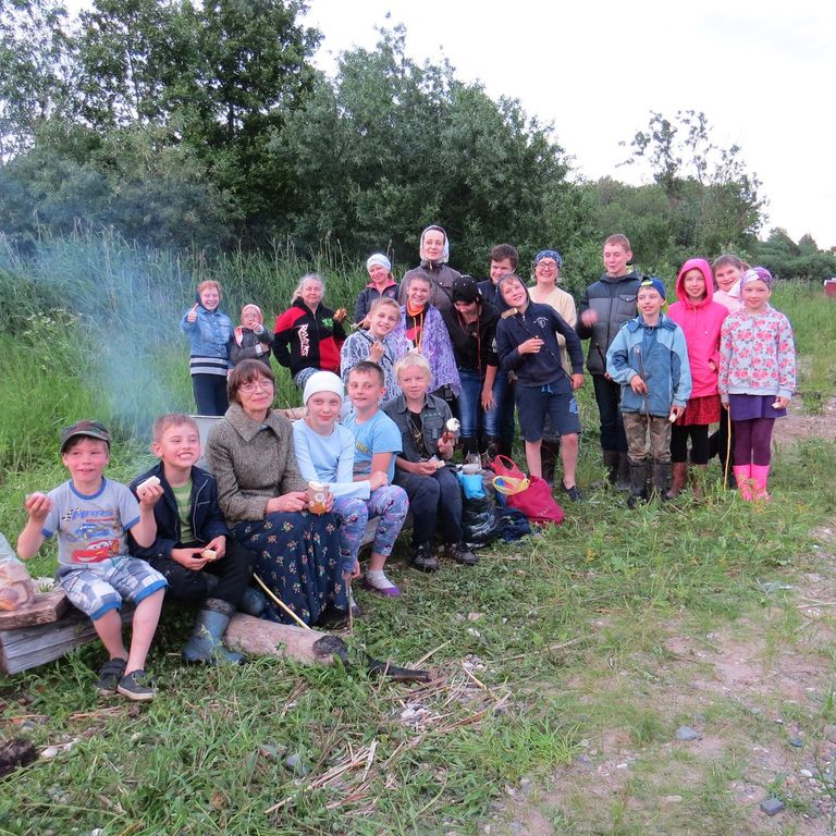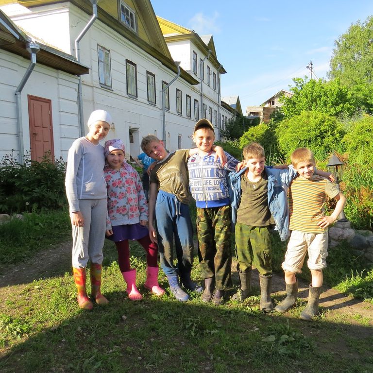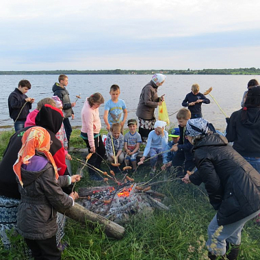 Весь день проходил благодатно для души: вставали с молитвой, если были богослужения, ходили в храм, трудились, вечером совершали молитвенное правило в келиях. А накануне дня первоверховных апостолов Петра и Павла все исповедались и в сам праздник причастились Святых Христовых Таин. В этот вечер на берегу Шексны трудники жгли костер, а детям благословили пожарить сосиски. А от того, что в это дождливое лето даже несколько раз удалось искупаться в реке, радости у детей не было предела.