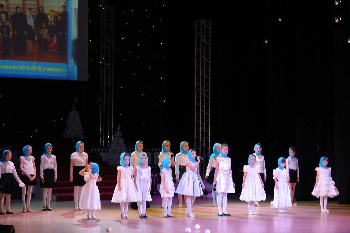 В самом большом зале Сарапульской епархии – Дворце культуры радиозавода г. Сарапула – собрались дети из Воскресных школ со всей Сарапульской епархии на праздник Рождества Господа и Спаса нашего Иисуса Христа.