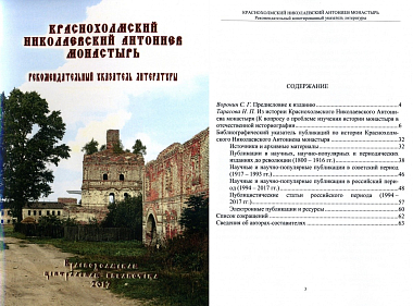Вышел библиографический указатель по научной и публицистической литературе о Краснохолмском Николаевском Антониевом мужском монастыре Бежецкой епархии Тверской митрополии.
