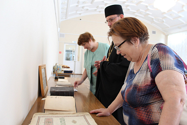 Перед началом мероприятия многочисленные гости с удовольствием рассматривали уникальные экспонаты, книги и документы из Государственного архива, Краеведческого музея, ризницы Вознесенского монастыря. Церковное облачение, утварь, редчайшие книги, старинные иконы, фотографии которых размещены на страницах фотоальбома, можно было не только увидеть, но и дотронуться до них.