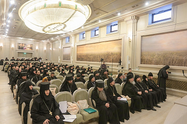 Особенный интерес и живой отклик вызвал доклад архимандрита Тихона (Шевкунова). В своих рассуждениях он глубоко и разносторонне раскрыл проблему оставления монашества и убедительно показал, что источник этой проблемы − в недостатке подлинной, живой веры. В рамках работы Комиссии Межсоборного присутствия группой специалистов во главе с архимандритом Тихоном было подготовлено глубокое исследование, посвященное каноническим вопросам, связанным с оставлением монастыря и монашества. В ближайшее время, после определенных дополнений и доработок, оно сможет быть представлено монастырям в качестве рекомендаций.