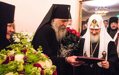 В этот же день от лица монашествующих Святейшего Патриарха Кирилла с днем тезоименитства поздравил Председатель Синодального отдела по монастырям и монашествующим, наместник Свято-Троицкой Сергиевой лавры архиепископ Сергиево-Посадский Феогност и преподнес Его Святейшеству второй том книги «Слово к монашествующим. Проповеди Святейшего Патриарха Кирилла в монастырях», специально изданный Синодальным отделом по монастырям и монашеству совместно с издательством Данилова ставропигиального мужского монастыря ко дню тезоименитства Святейшего Владыки.