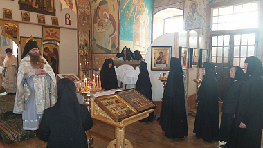 Члены Коллегии прибыли в общину к Литургии, участвовали в богослужении, после чего их пригласили на трапезу, а затем ознакомили со всеми достопримечательностями обители.