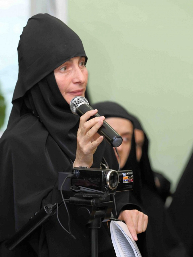 Первым прозвучал доклад игумена Антипы, настоятеля кельи св. прав. Анны (Святая Гора Афон), «Особенности духовного окормления в женских монастырях». По содержанию это выступление оказалось шире заявленной темы. В частности, имея в виду обсуждение «Положения», о. Антипа подробно осветил значение Предания для правильного устроения монашеской жизни. Затронув вопросы рясофорного монашества и выборности игумена, отец Антипа рассказал, как их трактуют на Афоне, и напомнил, что пребывающий в общежитии должен следовать канону, выше же канона может быть только заповедь любви.