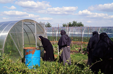 Гостью радушно встретили настоятельница игумения Серафима (Селитренникова) с сестрами. Визит начался с прогулки по монастырю, знакомства с находящимися на территории храмами, сестринскими корпусами и немалым хозяйством: просфорней, пекарней, скотным двором, садом и огородом. Игумения Мария и сопровождавшие ее лица с удовольствием отметили повсеместный порядок и благоухоженность, множество цветов, а также успешно продвигающееся обустройство монастыря – строительство двух новых корпусов, где расположатся игуменские покои и кельи сестер.