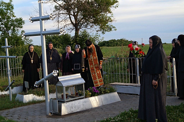 Вечером состоялось богослужение (службы в обители ежедневные), после которого гостей пригласили совершить панихиду на могиле основателя монастыря схиархимандрита Серафима (Марчука), упокоившегося в 2005 году и погребенного рядом на сельском кладбище. Почти все насельницы – чада и постриженицы батюшки Серафима, они свято чтут память своего духовного отца и неукоснительно, в завершение каждого дня служат по нему панихиды.