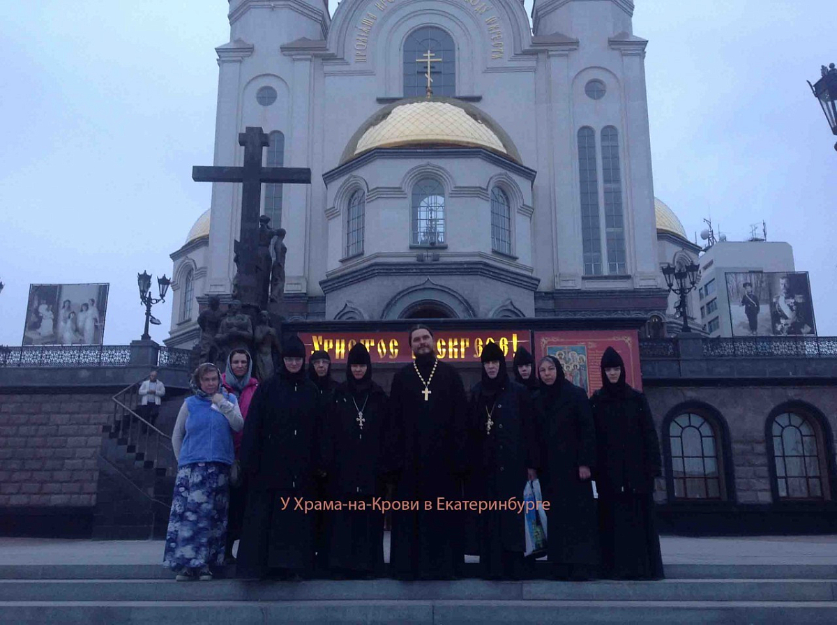 Далее паломники отправились к главным святыням Екатеринбурга – месту погребения останков Святых царственных страстотерпцев в мужском монастыре в урочище Ганина Яма и месту расстрела царской семьи, где теперь находится Храм-на-крови во имя Всех святых, в Земле Российской просиявших. Игумения Иулиания сказала, что еще при первом посещении этих мест почувствовала, что каждому русскому человеку обязательно надо побывать в Екатеринбурге, на Русской Голгофе, чтобы поклониться царственным страстотерпцам. Даже поверхностное знакомство с новейшей историей России, дневниковыми записями последних Романовых поражает христианским отношением царственных особ к трагическим событиям революции. Стремиться подражать своим святым, научиться молиться о врагах – такой настрой хотелось сохранить паломникам после уральской поездки. Чтобы, подобно послушницам Ново-Тихвинской обители, приносившим продукты царской семье в Ипатьевский дом, быть готовыми взойти на крест за любовь к Богу и ближнему.