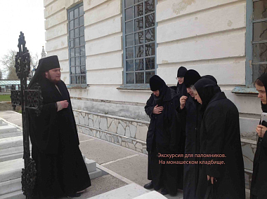Паломничество, организованное сестрами Ново-Тихвинского монастыря для гостей из Москвы, началось с посещения храмов обители и экскурсии по монастырю. Сестры показали паломникам иконописные и пошивочные мастерские, просфорню, трапезную со службами, сестринские корпуса и хозяйственные службы. Разумный порядок во всем, чистота и искренняя забота сестер, проявленная ими в столь ответственный для жизни Ново-Тихвинской обители период (именно в это время монастырь готовился к встрече Святейшего Патриарха и освящению Предстоятелем отреставрированного Собора), глубоко тронули паломников.