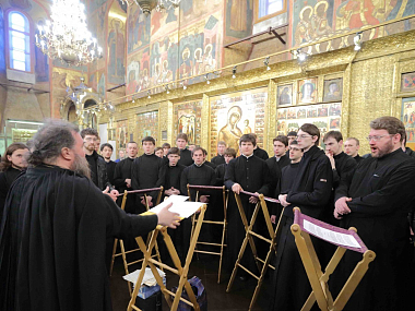 Пел братский хор Троице-Сергиевой Лавры под управлением архимандрита Глеба (Кожевникова). Проповедь прочел архимандрит Макарий (Веретенников).