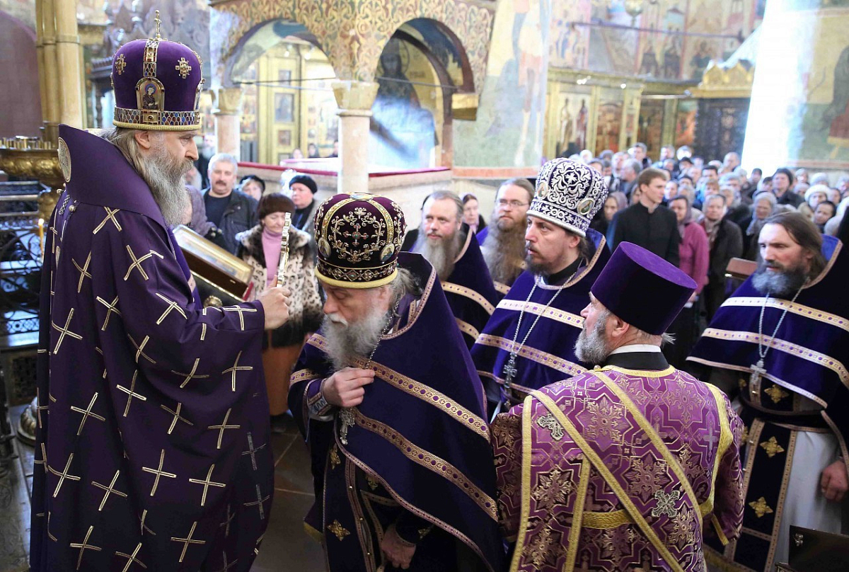 Его Высокопреосвященству сослужили викарий Московской епархии епископ Дмитровский Феофилакт, первый секретарь Патриарха Московского и всея Руси по г. Москве протоиерей Владимир Диваков и братия Свято-Троицкой Сергиевой Лавры.