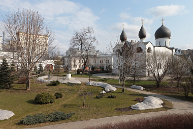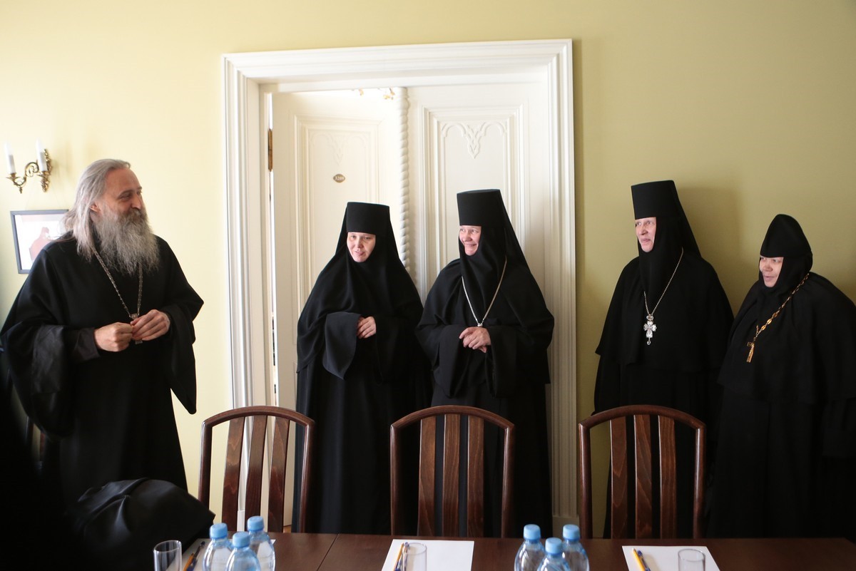 По окончании Божественной литургии Председатель Синодального отдела архиепископ Феогност с членами коллегии Отдела осмотрели территорию обители, ознакомились с жизнью сестричества Марфо-Мариинской обители.