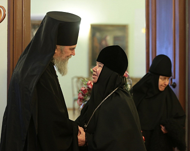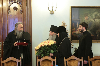 Начиная работу совещания, игумены и игумении поздравили Председателя Синодального отдела по монастырям и монашеству архиепископа Сергиево-Посадского Феогноста с Днем тезоименитства (27 марта) и Днем архиерейской хиротонии (31 марта). Члены Синодального отдела подарили Его Высокопреосвященству панагию и крест.