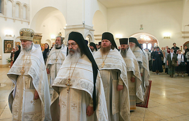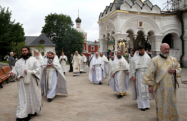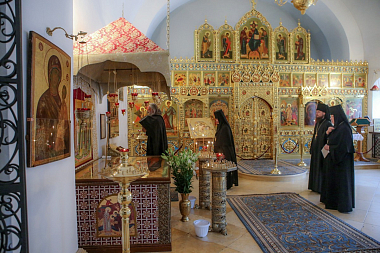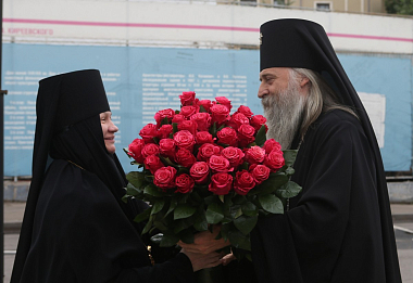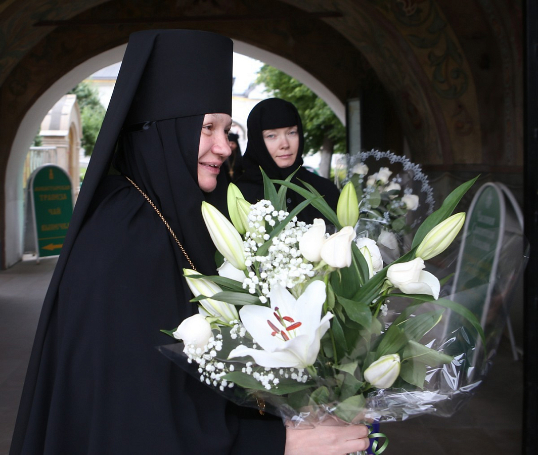 В этот день праздничную Божественную литургию в монастырском соборе Рождества Пресвятой Богородицы возглавил председатель Синодального отдела по монастырям и монашеству архиепископ Сергиево-Посадский Феогност.