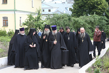По окончании трапезы состоялось собеседование членов коллегии Синодального отдела по монастырям и монашеству с кандидатами на должность игуменов и игумений Благовещенской и Владимирской епархий.