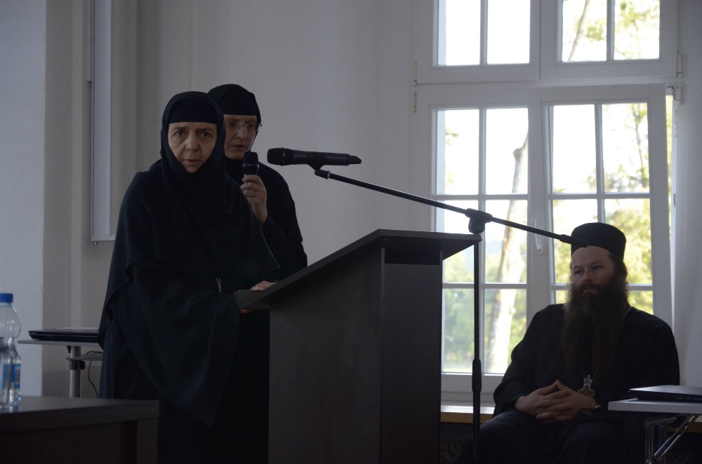 Доклад игумена Елисея (монастырь Симонопетра, Святая Гора Афон) на тему «Религиозная жизнь и молитва в отдельной святогорской киновии» перевела на польский язык и зачитала настоятельница женского монастыря в Залешанах игумения Екатерина.
