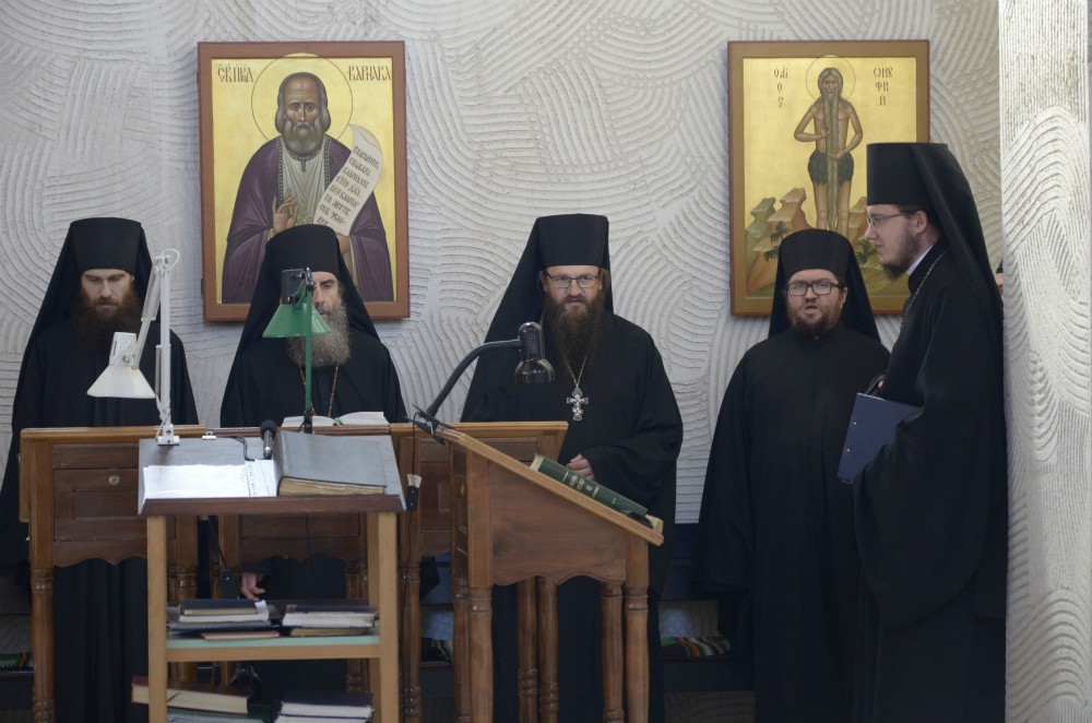 Наместник Лавры приветствовал гостей мероприятия: представителя Святейшего Патриарха Московского и всея Руси Кирилла архимандрита Алексия (Поликарпова), наместника Данилова старопигиального мужского монастыря Москвы, члена Коллегии Синодального отдела по монастырям и монашеству Русской Православной Церкви; представителя наместника Свято-Успенской Киево-Печерской лавры, председателя Синодальной комиссии по делам монастырей Украинской Православной Церкви митрополита Вышгородского и Чернобыльского Павла архимандрита Агафона (Опанасенко), помощника благочинного Свято-Успенской Киево-Печерской лавры; представителя Святейшего Вселенского Патриарха Варфоломея игумению Феоксению, настоятельницу монастыря «Живоносный Источник» Хрисопиги в Ханье (о. Крит, Греция), с сестрами.