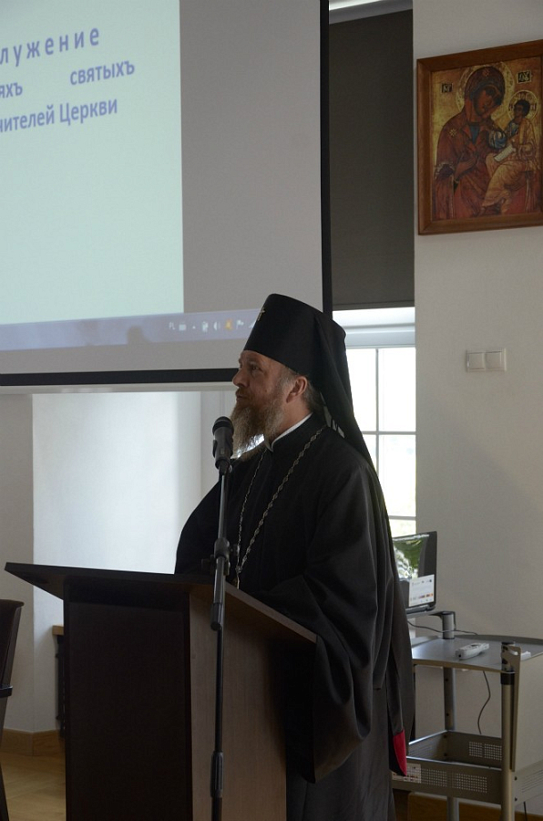 С первым докладом на тему «Богослужение в изречениях святых отцов и учителей Церкви» выступил архиепископ Бельский Григорий, преподаватель литургики Варшавской духовной академии.