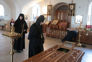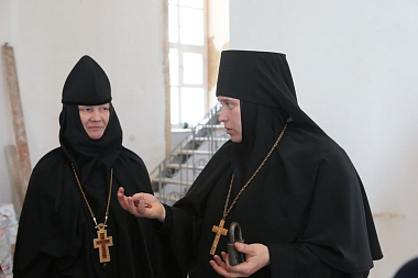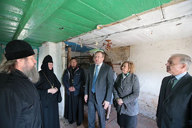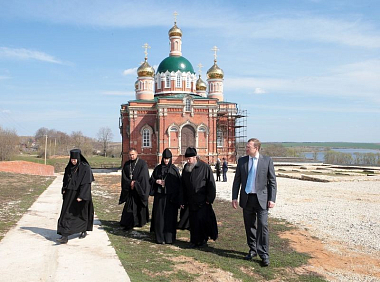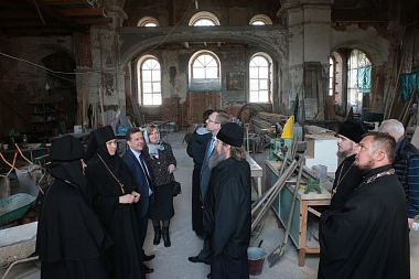 Высоких гостей встречала настоятельница монастыря игумения Феофания (Проценко), которая провела экскурсию по храмам и иным строениям обители. В ходе осмотра монастыря был затронут вопрос о передаче древней монастырской земли в церковную собственность.