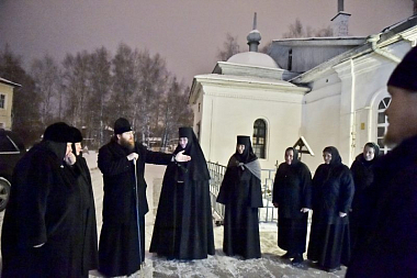 Подготовительные мероприятия для организации монашеской жизни в данном месте начались ровно год назад, когда митрополит Игнатий подписал Указ об образовании архиерейского подворья Горне-Успенского женского монастыря г. Вологды. За это время бывший игуменский корпус был подготовлен для проживания сестер обители и размещения в нем регентского отделения Вологодской Духовной семинарии.