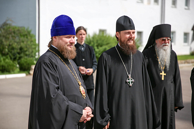 В Свято-Пафнутьевской обители члены коллегии Синодального отдела встретились с викарием Калужской епархии епископом Тарусским Серафимом, наместником Рождества Пресвятой Богородицы Свято-Пафнутьева Боровского мужского монастыря иеромонахом Пафнутием (Архиповым) и благочинным обители иеромонахом Саввой (Петрушко).