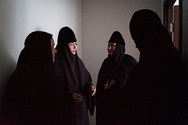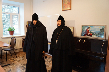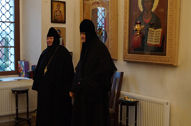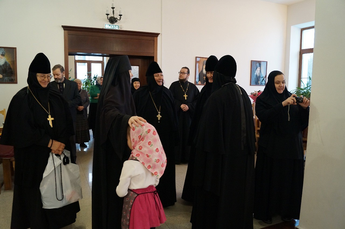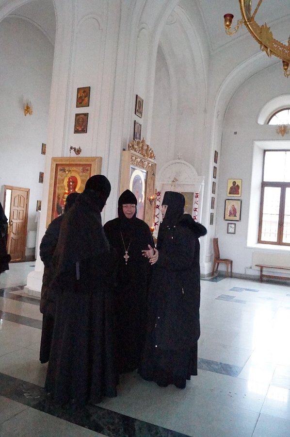 Членов Комиссии встретила и ознакомила с монашеской жизнью обители старшая сестра подворья монахиня Параскева (Ляхова), а также настоятельница Свято-Никольского Черноостровского женского монастыря г. Малоярославца игумения Николая (Ильина).