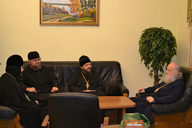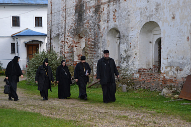 Его Высокопреподобие сопровождала член Комиссии Синодального отдела по монастырям и монашеству, настоятельница Покровского Хотькова ставропигиального женского монастыря игумения Олимпиада (Баранова).