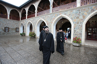 Затем паломники побывали в Священном царском ставропигиальном монастыре Киккской иконы Божией Матери. Специально для монашествующих Русской Православной Церкви чтимая икона Царицы Небесной, которая традиционно закрыта пеленой от глаз паломников, была приоткрыта для того, чтобы наместники, игумены, игумении и другие члены делегации могли приложиться к образу.