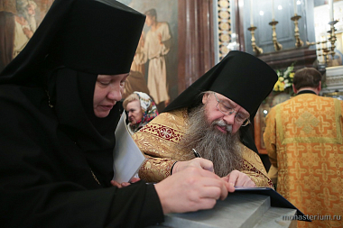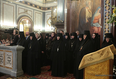 В Храме Христа Спасителя молились представитель Патриарха Антиохийского и всего Востока митрополит Филиппопольский Нифон, игумен Русского на Афоне Пантелеимонова монастыря архимандрит Евлогий (Иванов); председатель Синодального отдела по взаимоотношениям Церкви с обществом и СМИ В.Р. Легойда; руководитель Художественно-производственного предприятия Русской Православной Церкви «Софрино» Е.А. Пархаев; президент Международного фонда единства православных народов В.А. Алексеев; настоятельницы женских обителей, священнослужители Москвы и Подмосковья, сотрудники синодальных и иных церковных структур, представители приходских советов, преподаватели и учащиеся церковных учебных заведений.