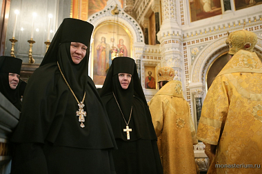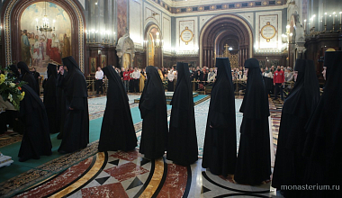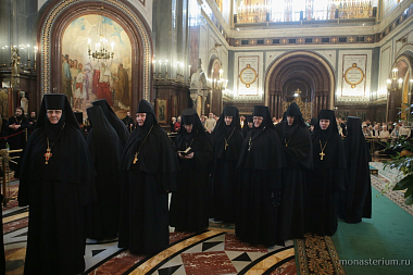 За Литургией пели хоры Храма Христа Спасителя (регент — И.Б. Толкачев) и Сретенского ставропигиального монастыря (регент — Н.С. Жила).
